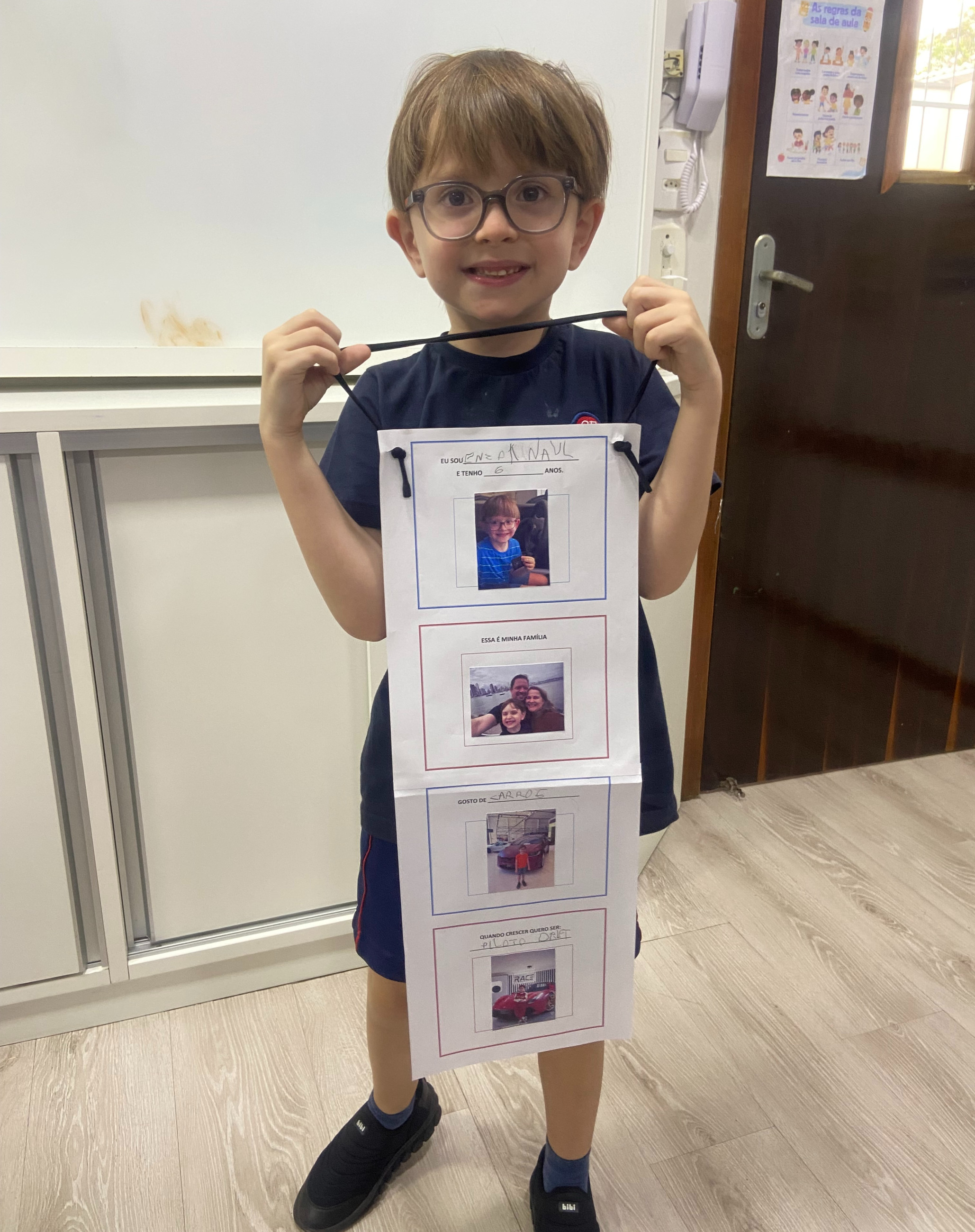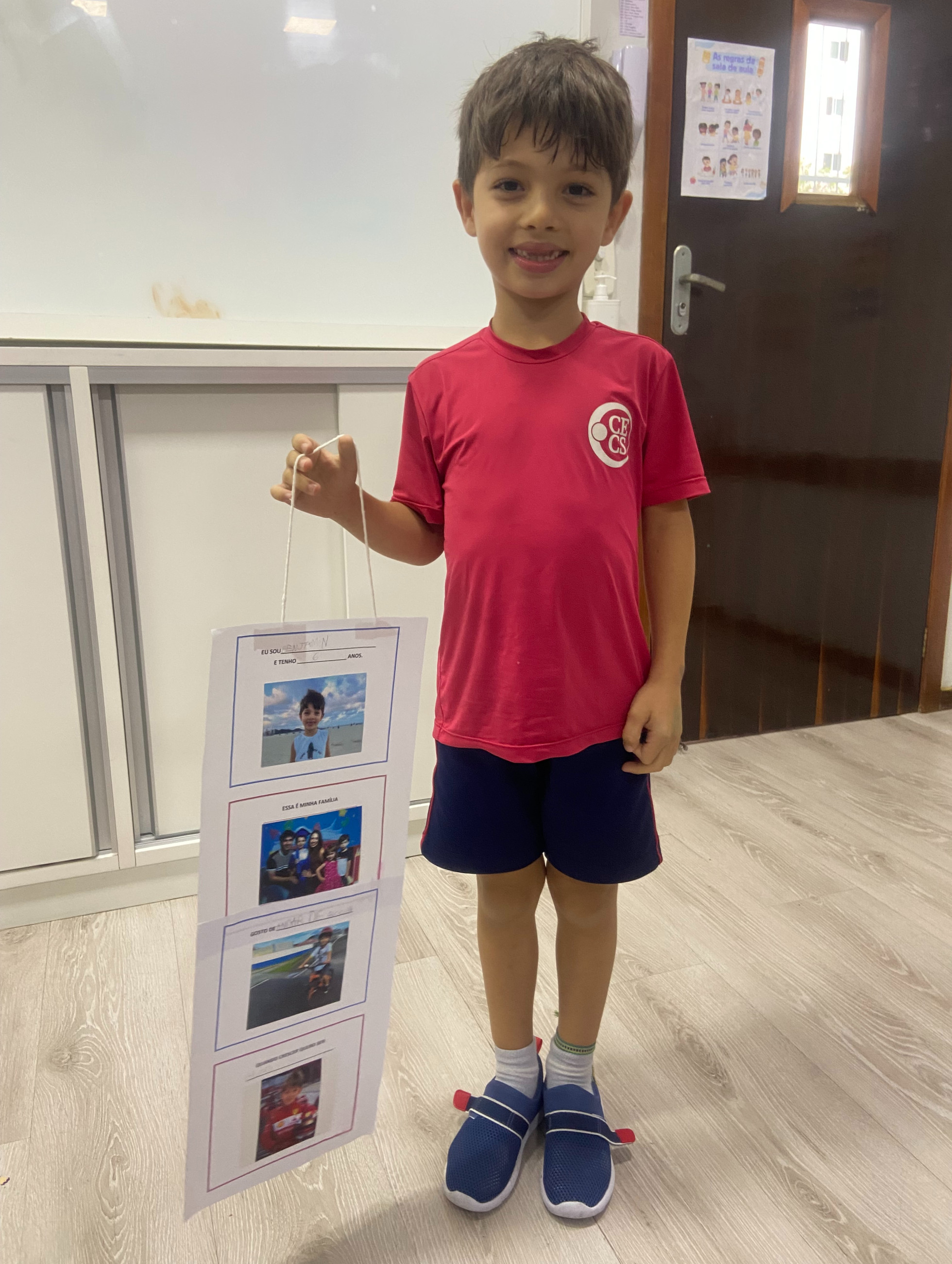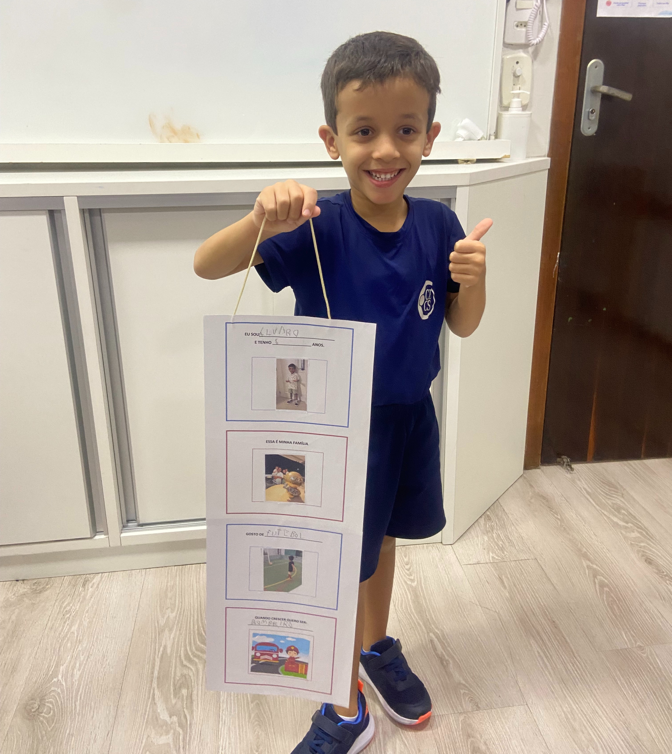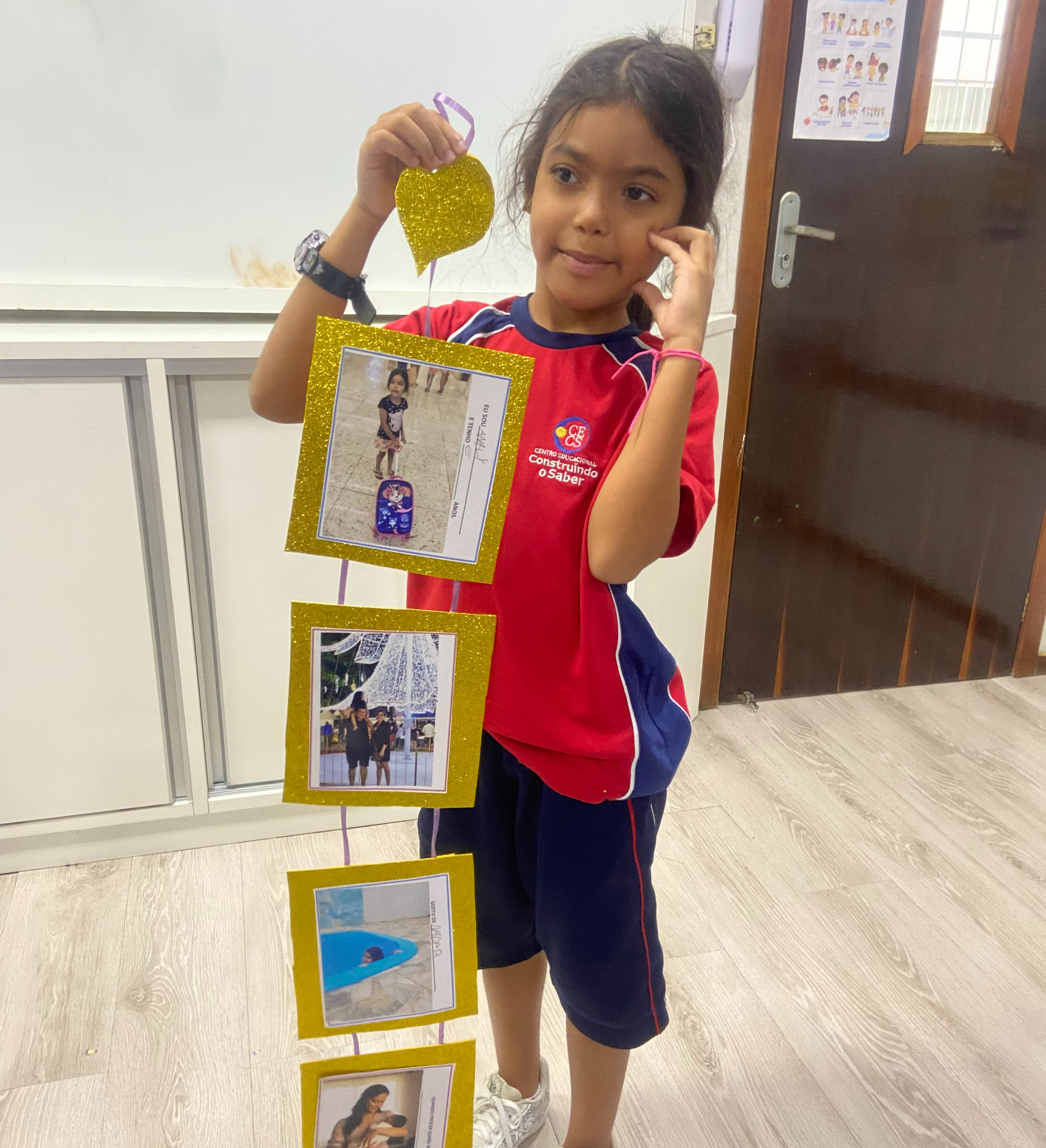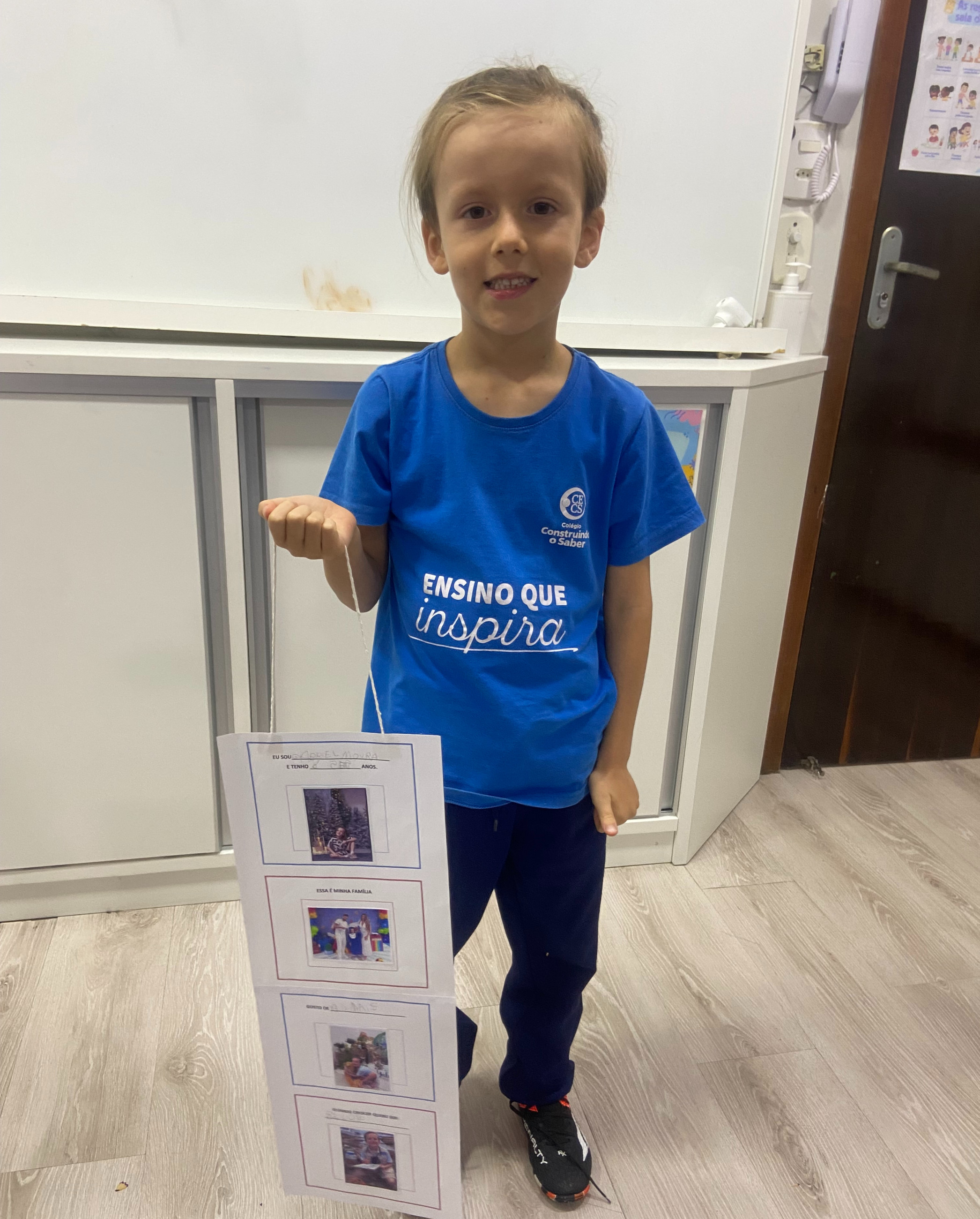 Após a confecção, os alunos trouxeram seus móbiles para a escola e tivemos um momento muito significativo em sala: a apresentação para os colegas. Cada criança teve a oportunidade de falar um pouco sobre si, mostrando seu trabalho e contando curiosidades sobre sua vida, seus gostos e seus sonhos.