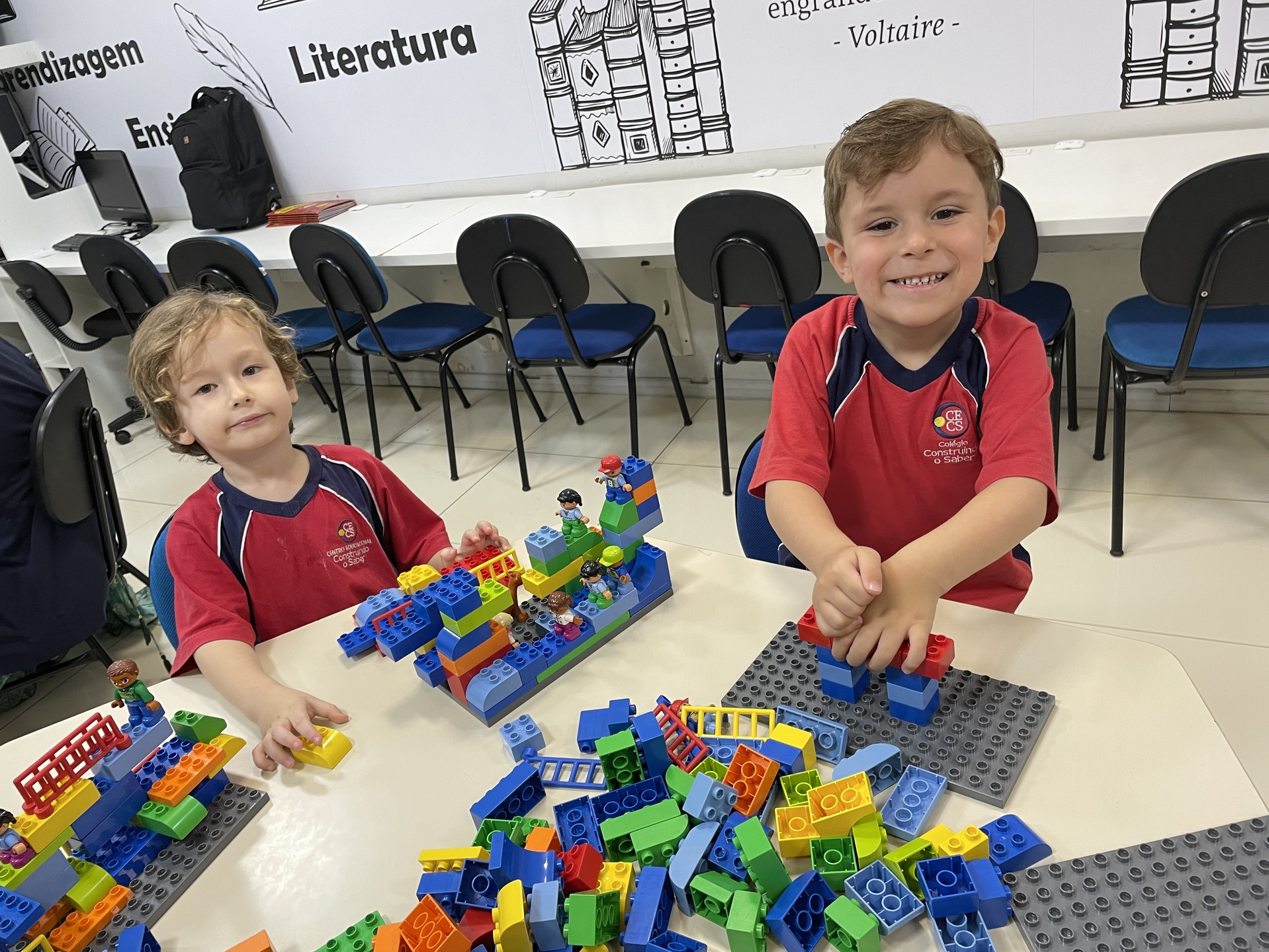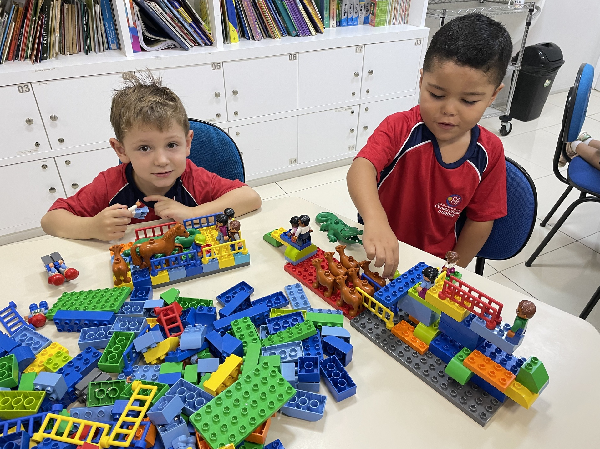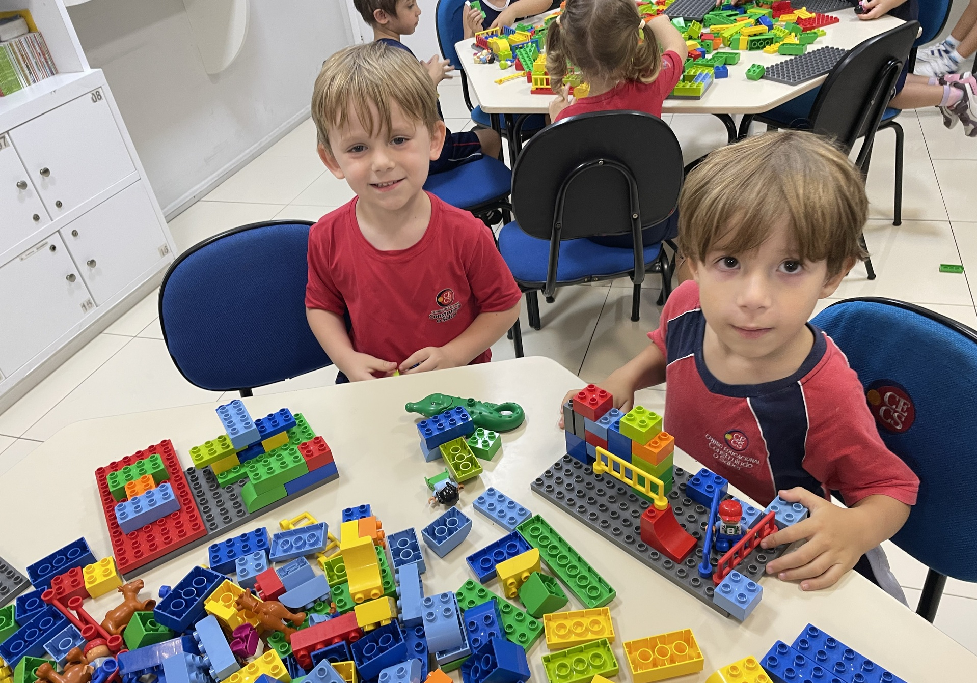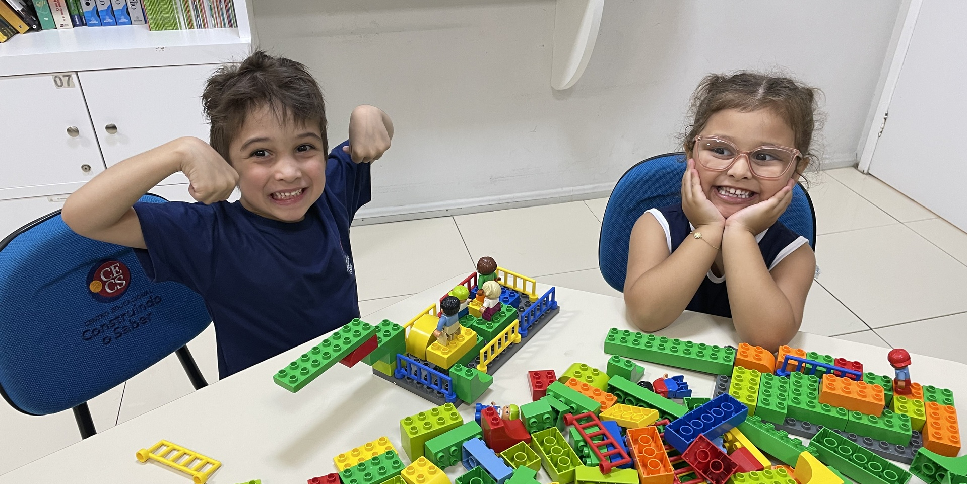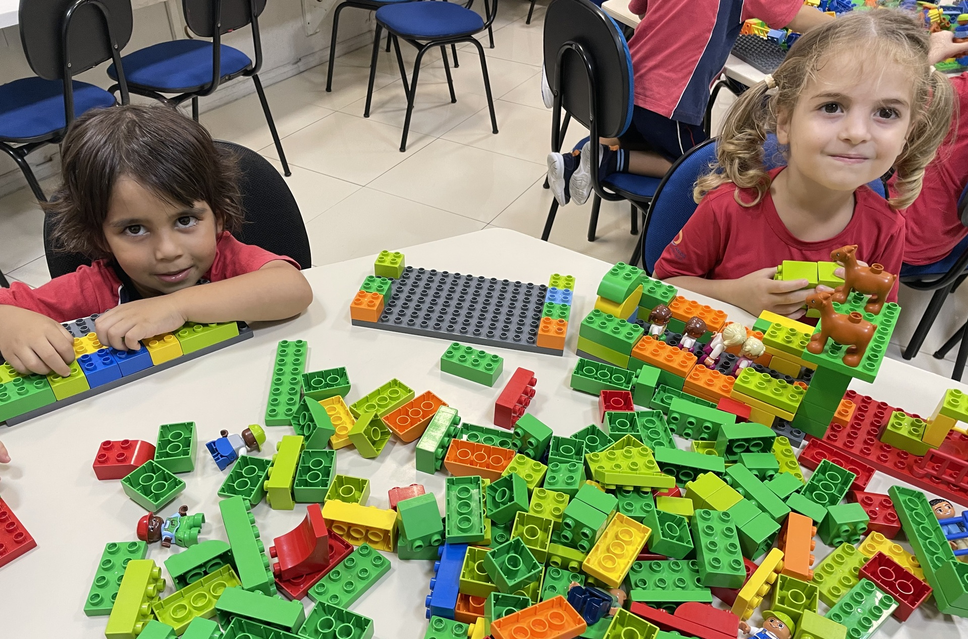 Durante a atividade, as crianças exploram o universo LEGO de forma livre e orientada, construindo, testando ideias e dando forma à própria imaginação. A cada encontro, novos desafios são propostos, incentivando o raciocínio, a organização do pensamento e a resolução de problemas de maneira leve e envolvente. Além disso, o uso do inglês acontece de forma natural, inserido no contexto da brincadeira e da interação entre os alunos.
