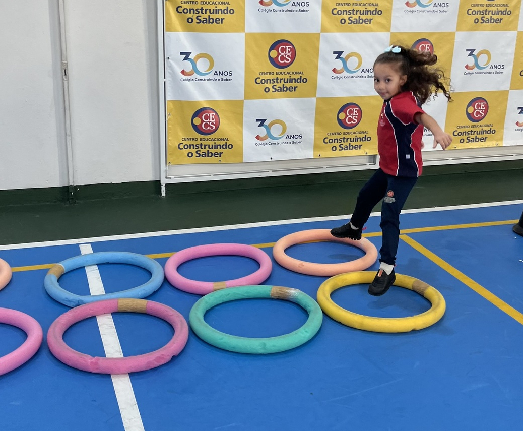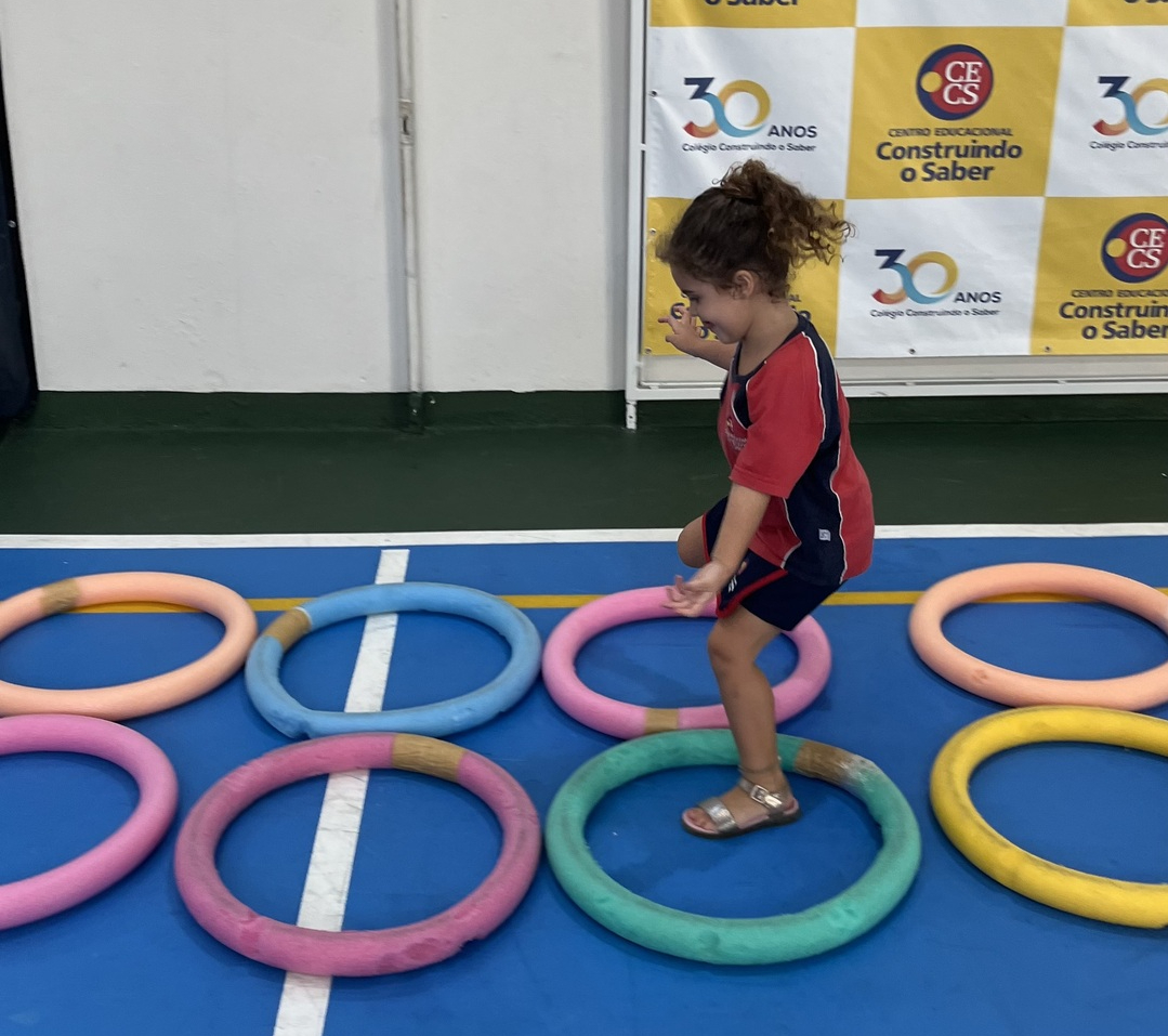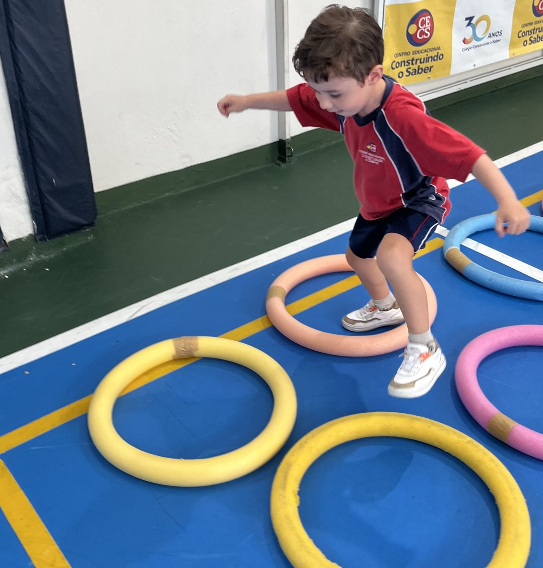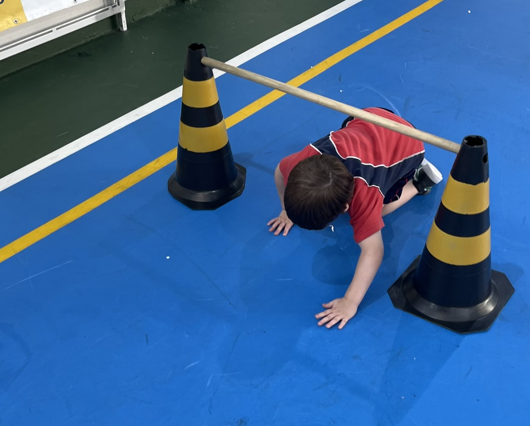 Ao longo do percurso, os pequenos vivenciaram ações como abaixar, saltar, contornar obstáculos, passar por balizas e se equilibrar em diferentes situações. Cada etapa do circuito foi pensada para desenvolver habilidades importantes, como equilíbrio, agilidade, coordenação e percepção corporal, além de incentivar a autonomia e a confiança em cada tentativa e conquista.