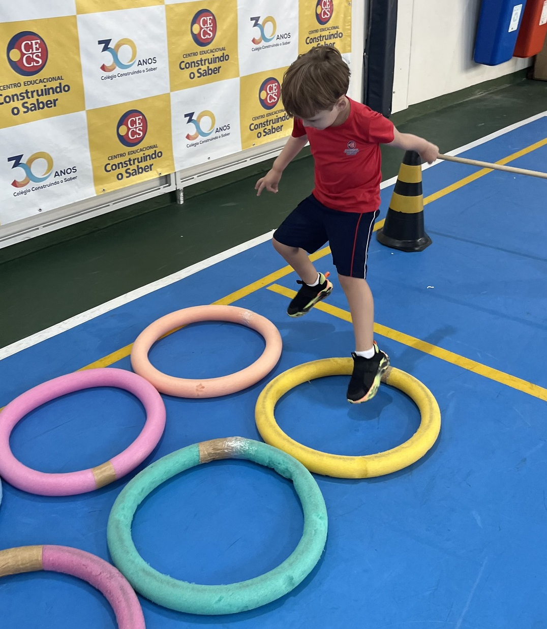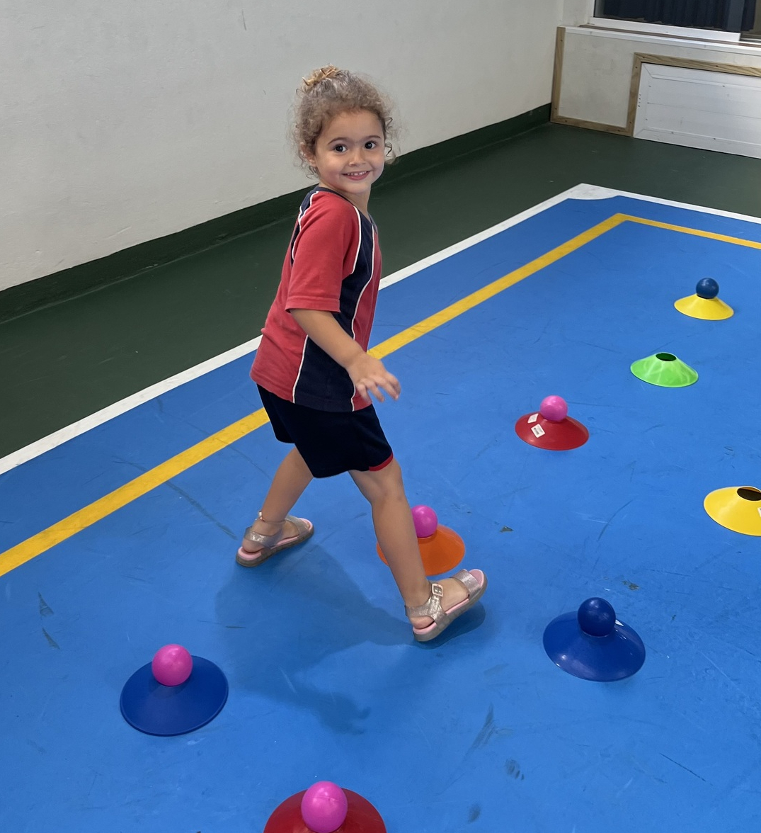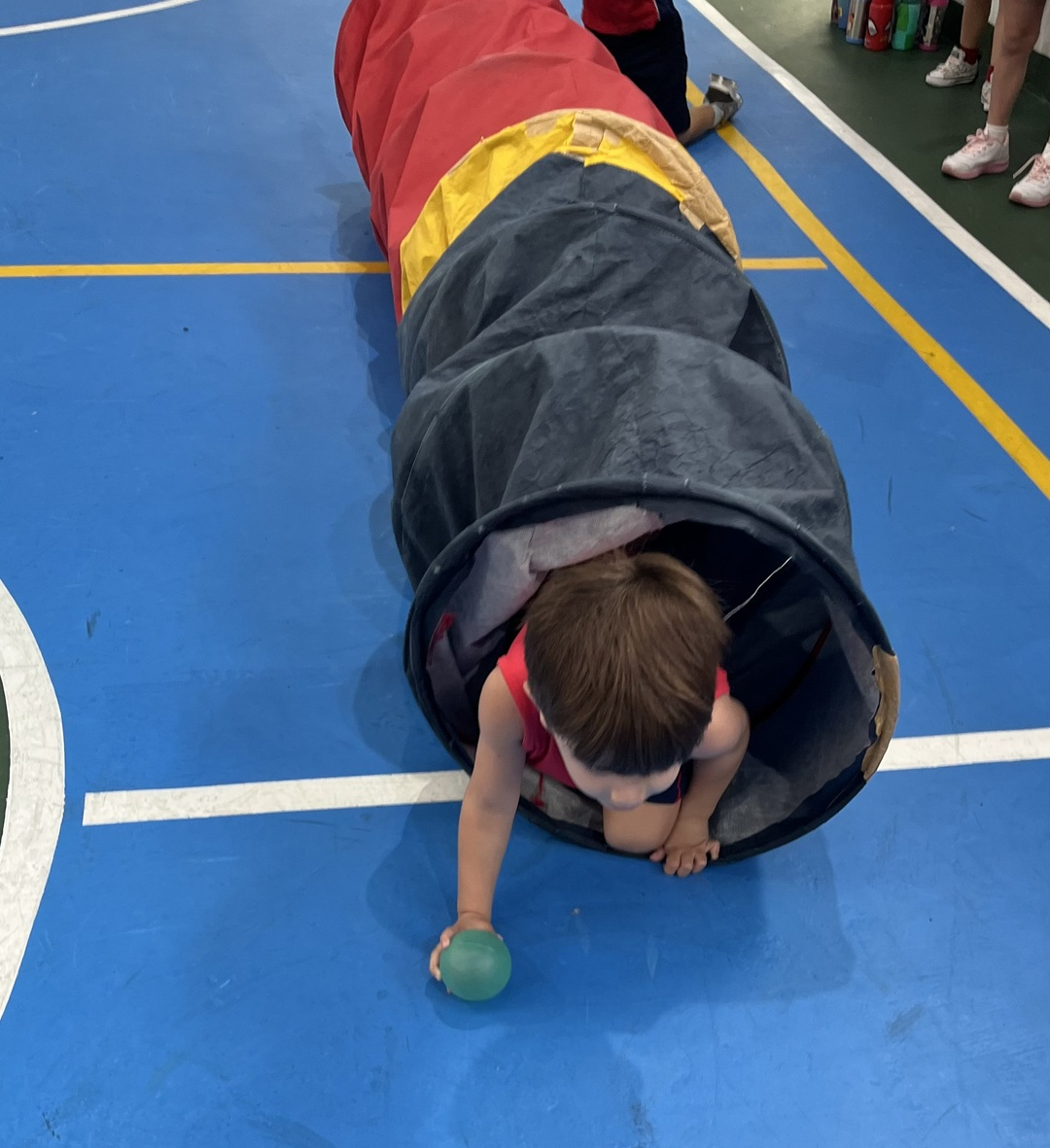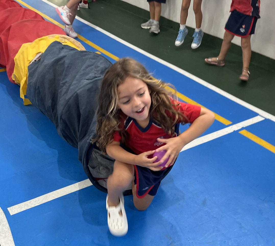 Ao longo do percurso, os pequenos vivenciaram ações como abaixar, saltar, contornar obstáculos, passar por balizas e se equilibrar em diferentes situações. Cada etapa do circuito foi pensada para desenvolver habilidades importantes, como equilíbrio, agilidade, coordenação e percepção corporal, além de incentivar a autonomia e a confiança em cada tentativa e conquista.